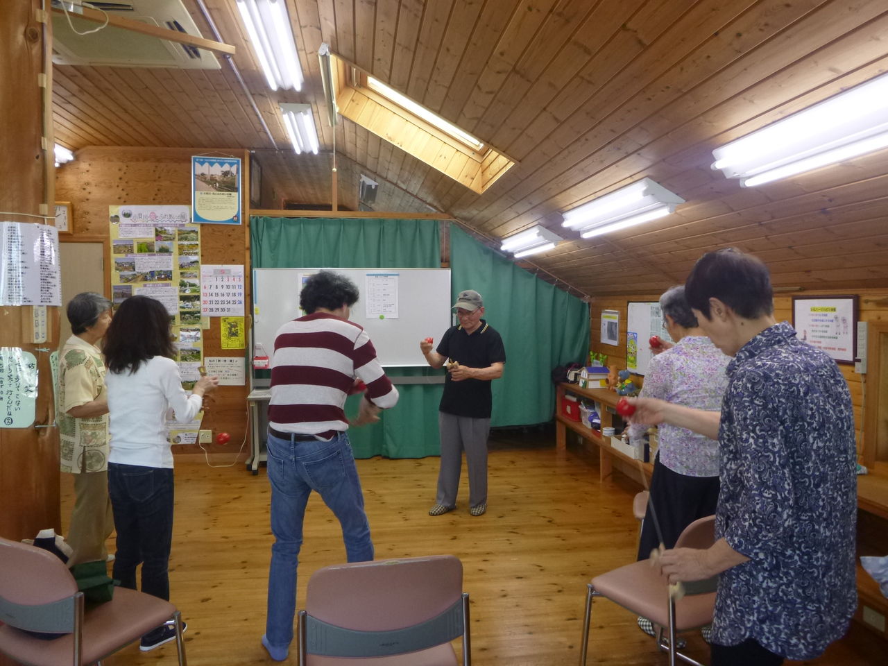 2018年05月16日 健康けん玉 今日は高良先生のけん玉教室の日です。。。皆さん真剣です!季節はずれの暑さと、皆さんの熱気で今年初めての冷房をつけました。。。(´∀`*) タグ :#龍ケ崎市#健康#けん玉